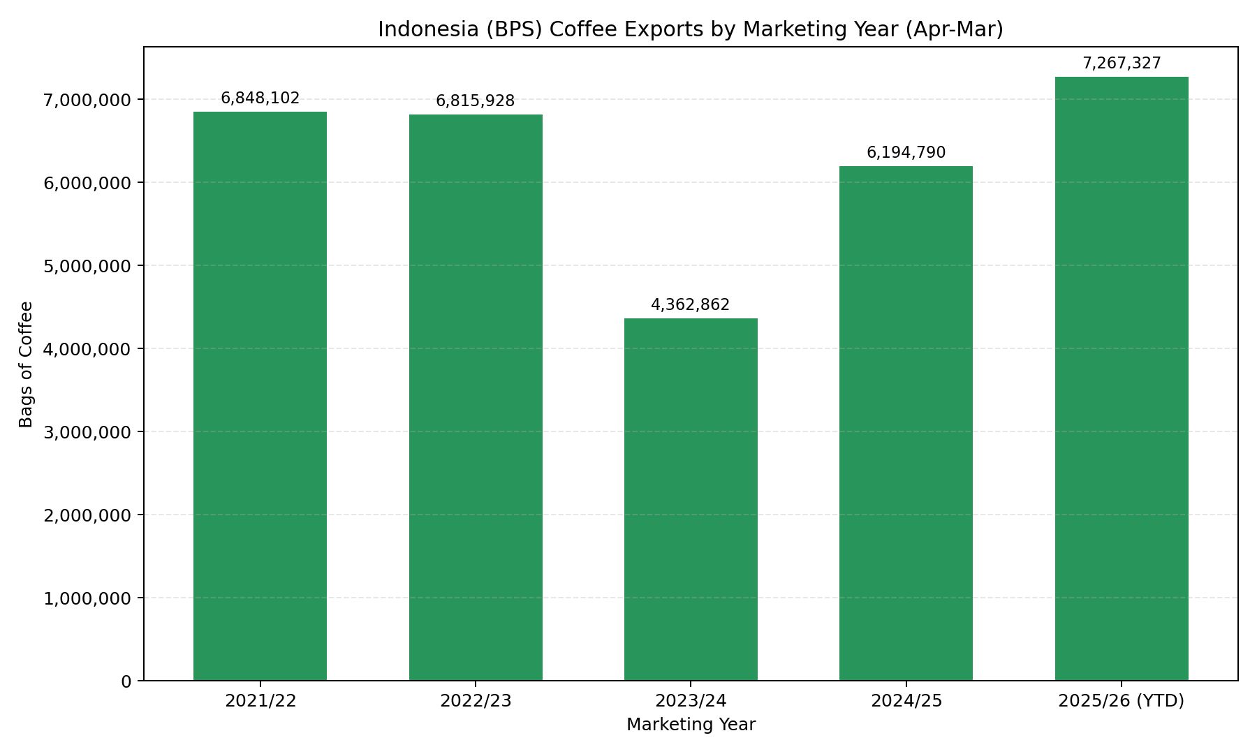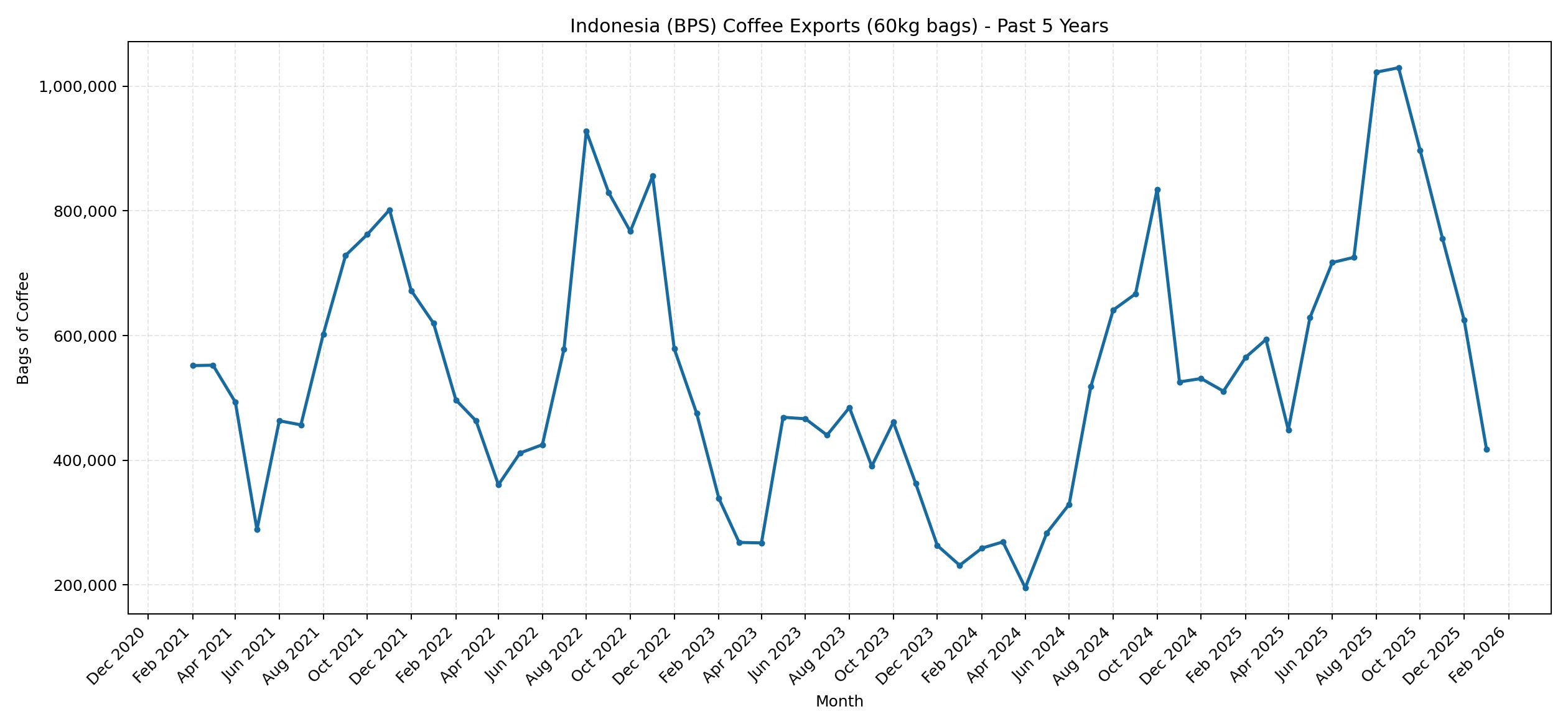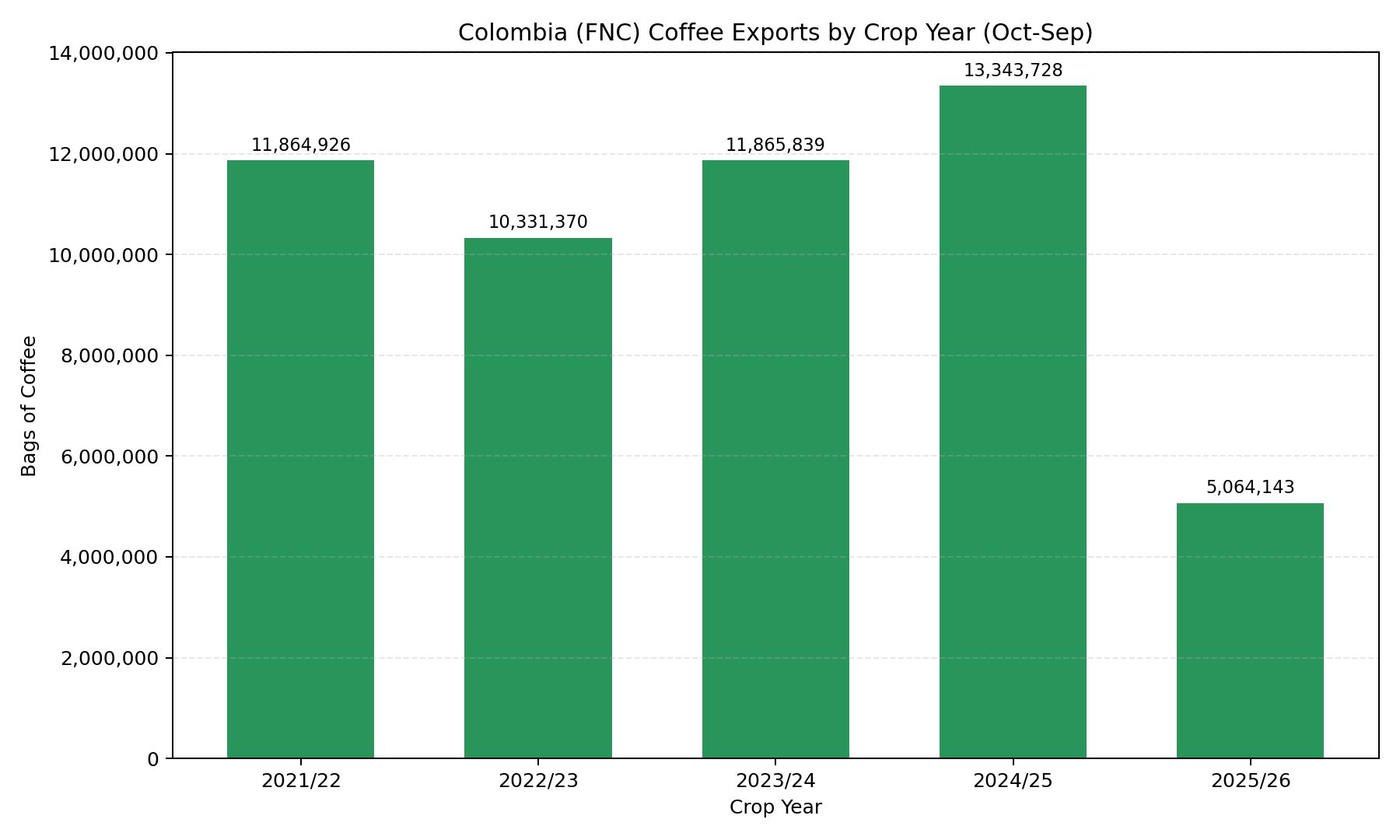 Colombia: Exports, have been strongly, however in the last few months have weakened on the back of a smaller crop and excessive rain creating delays in domestic logistics.