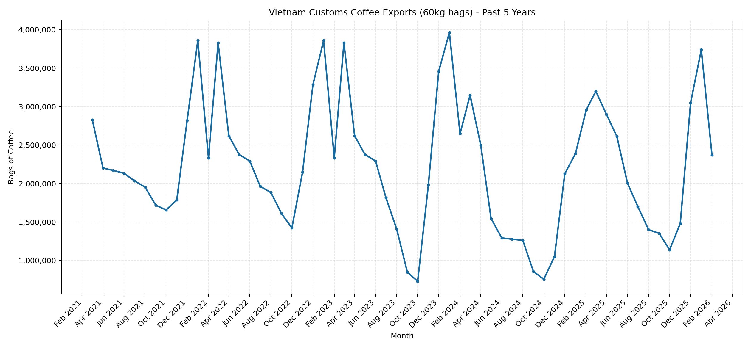 Vietnam exports: Exports are healthy as demand ahead of the arrival of Conilons from Brazil.