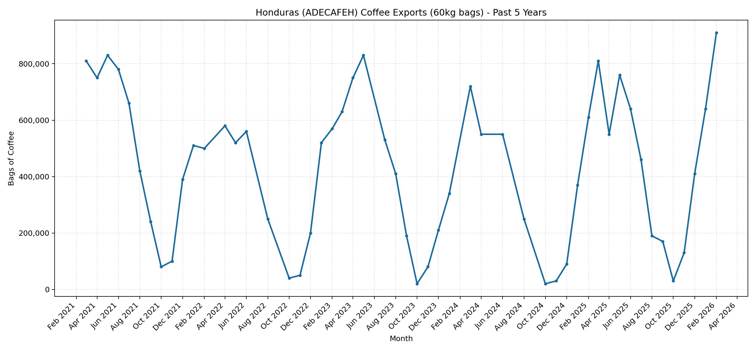 Honduras exports: Exports are very strong this marketing year, a good majority of recent exports have been delivered against March.