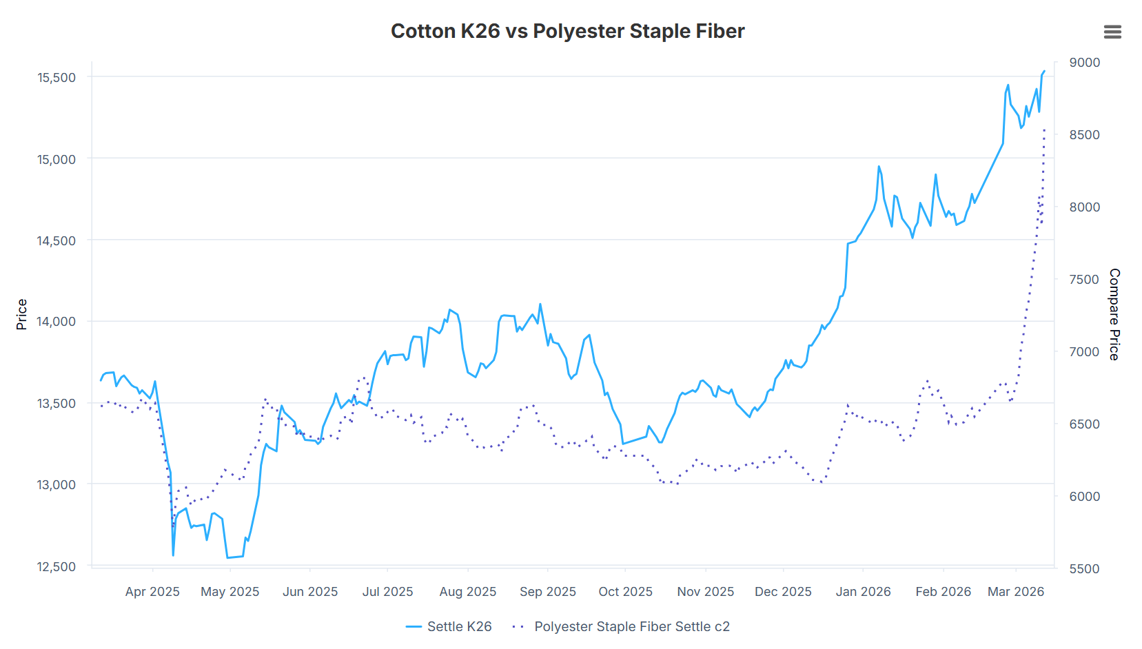 Sustained strength in crude keeps PSF elevated, supporting stronger U.S. cotton export demand