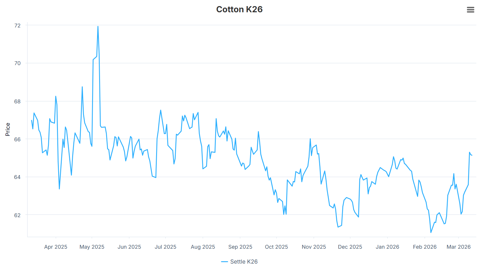 We are edging closer to the point where cotton can finally transition out of its bear market, although that still feels more like a 2026/27 crop-year story than an immediate one. Even so, the war with Iran is increasingly difficult to ignore, and in our view it is only a matter of time before it feeds into flat price.