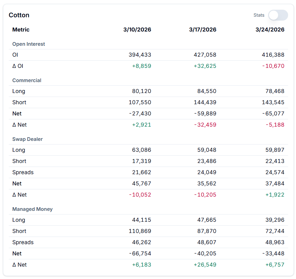 Positioning driving cotton rally - ~30k lots of short covering; commercials selling into strength.